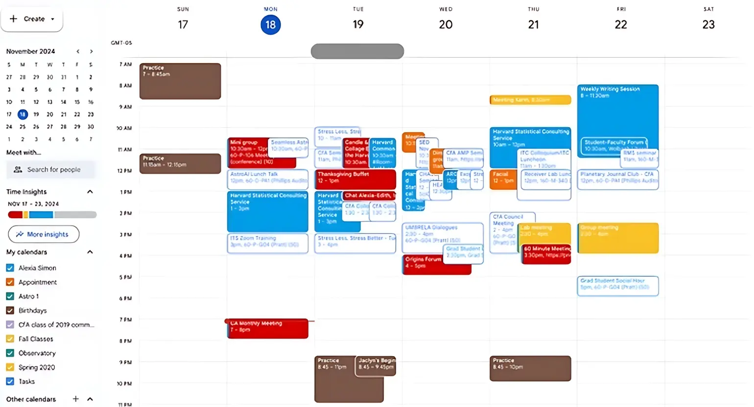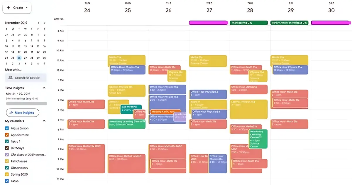 Voici mon calendrier google d’une semaine typique de ce mois-ci: